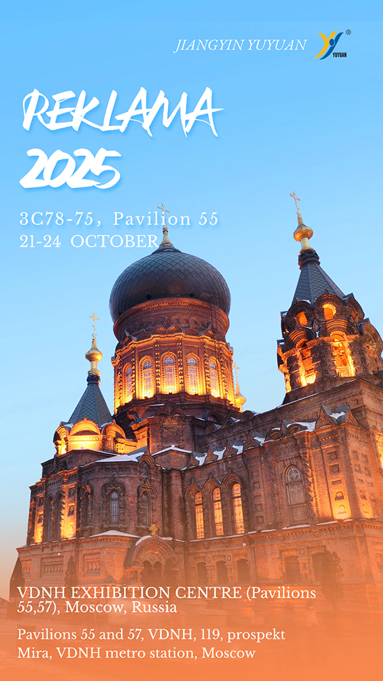 Приглашаем Вас посетить наш стенд на Российской рекламной выставке 2025 года — одном из самых значимых событий в рекламной и маркетинговой индустрии. Эта выставка предлагает исключительную площадку для знакомства с новейшими инновациями, тенденциями и технологиями, формирующими будущее рекламы в России и за ее пределами. Номер стенда: 3C78-75, зал 55 Даты и часы работы выставки: 21-23 октября 2025 г.: 10:00 - 18:00 24 октября 2025 г.: 10:00 - 16:00 Место проведения: Выставочный центр ВДНХ (павильоны 55, 57) Адрес: павильоны 55 и 57, ВДНХ, проспект Мира, 119, станция метро ВДНХ, Москва, Россия На нашем стенде мы представим наши новейшие продукты и решения, а наша команда обсудит, как мы можем поддержать ваши бизнес-цели. Мы с нетерпением ждем возможности связаться с вами, обменяться идеями и изучить потенциальное сотрудничество. Ваше присутствие будет высоко оценено, и мы уверены, что это мероприятие предоставит значимые возможности для налаживания связей и роста. Если у вас есть какие-либо вопросы или вам нужна дополнительная информация, пожалуйста, свяжитесь с нами. Надеемся увидеть вас там! С уважением, Компания: Jiangyin YUYUAN Plasticizing Co., Ltd. Телефон: 86-0510-86222942
